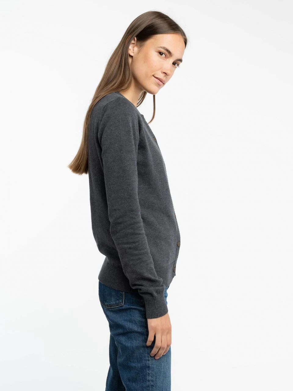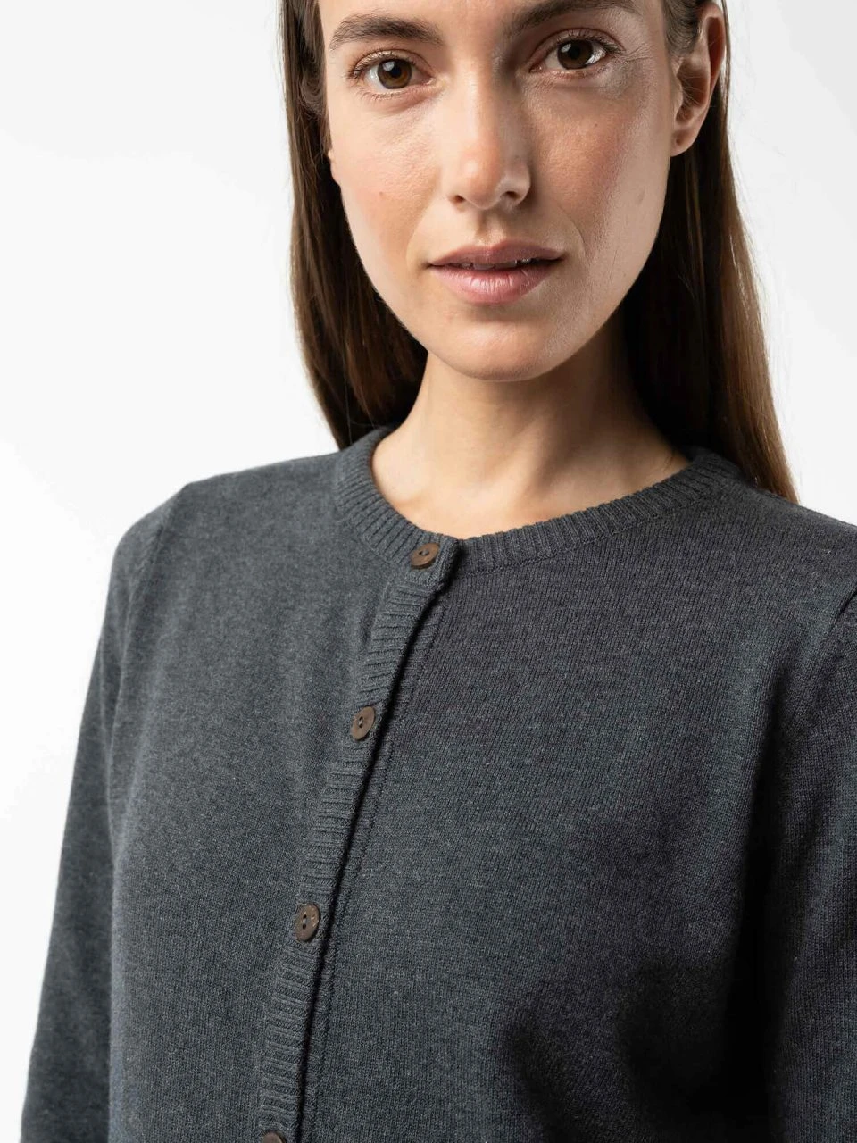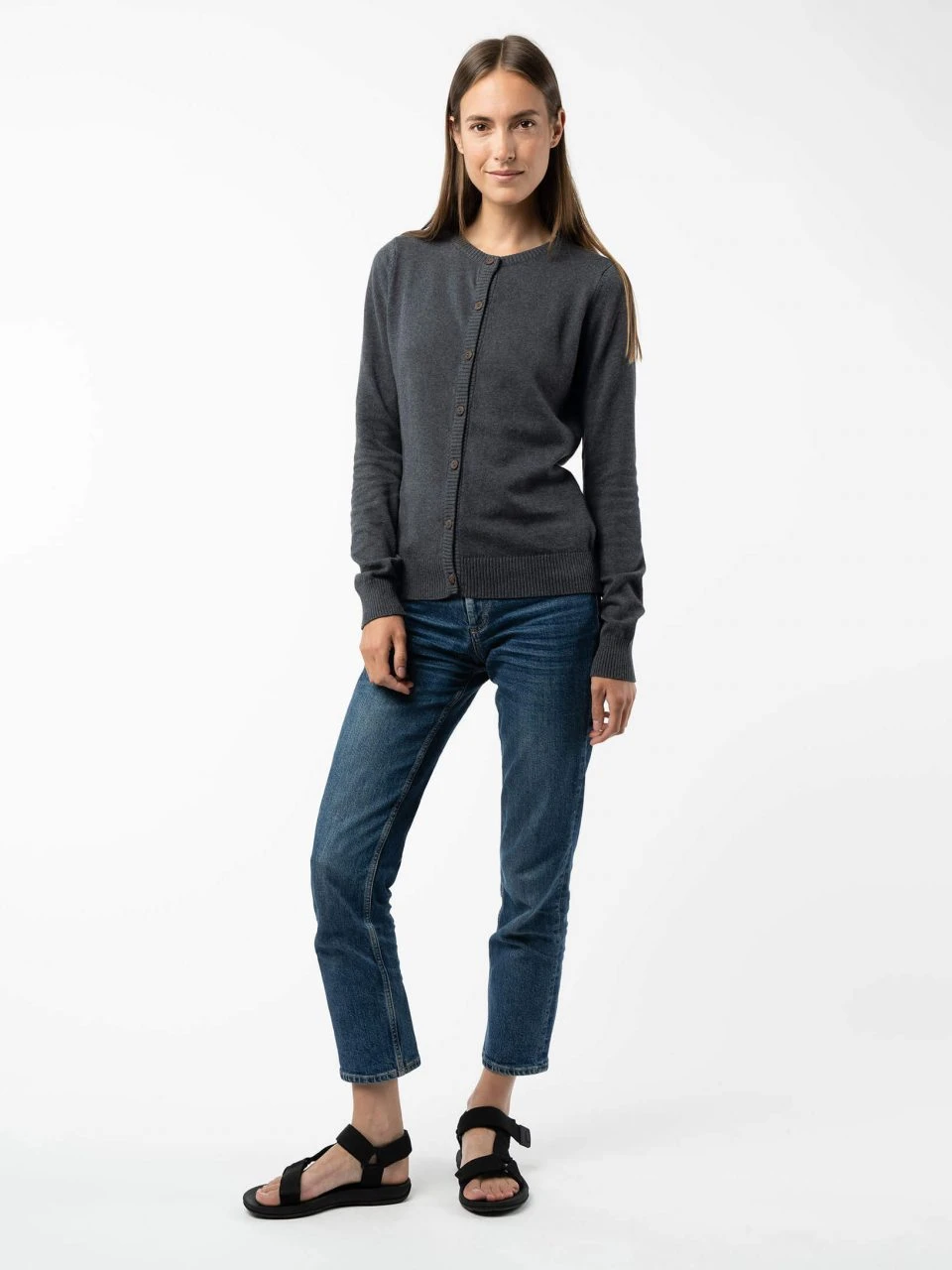 Leichter Cardigan aus reiner Fairtrade Bio-Baumwolle. Die figurnah geschnittene Strickjacke kommt mit beständigen Rippbündchen und hat Knöpfe aus Kokosnuss. Die Strickware ist vorgewaschen, somit bleibt die Passform erhalten.