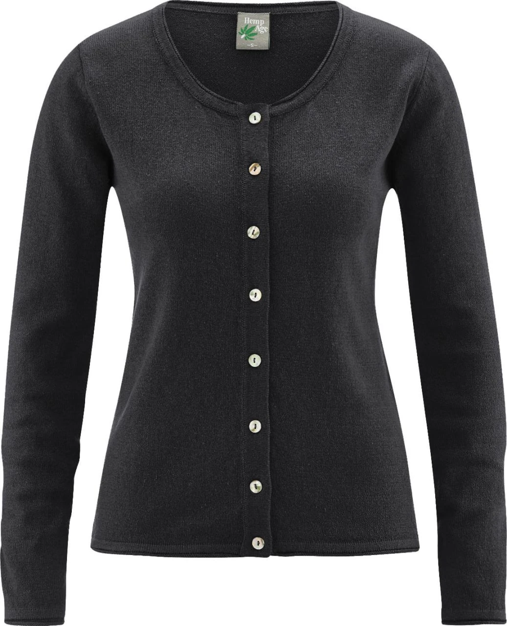 Klassischer Damen Cardigan aus 38% Hanf (recycelt), 32% Bio-Baumwolle (recycelt) und 30% Bio-Baumwolle. Die Feinstrick-Jacke in normaler Passform kommt mit Rundhalsausschnitt und durchgehender Knopfleiste (Perlmutt-Knöpfe). Die Abschlüsse am Ausschnitt, an den Ärmeln und an der Hüfte sind leicht aufgerollt.