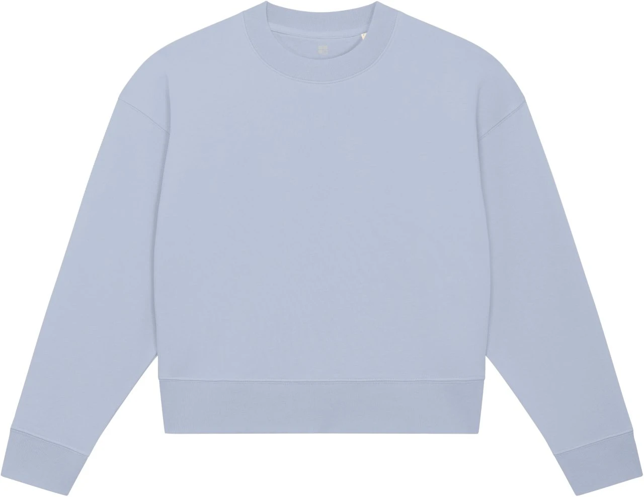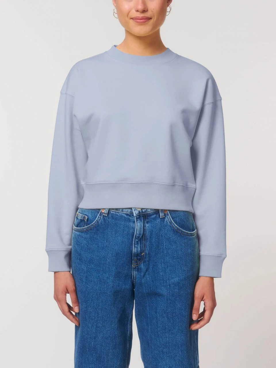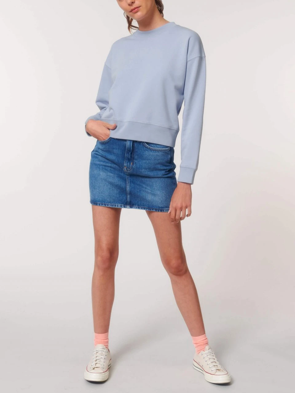 Kurzes, gerade geschnittenes Sweatshirt aus Bio-Baumwolle und 15% recyceltem Polyester. Der Rundhals-Pullover hat überschnittene Schultern, die für einen entspannten Look sorgen. Der Ausschnitt, die Ärmelenden und der Hüftabschluss sind mit breiten Rippbündchen versehen. Der dicke Terry Stoff (300 g/m²) liegt angenehm weich auf der Haut und sorgt für ein komfortables Tragegefühl.