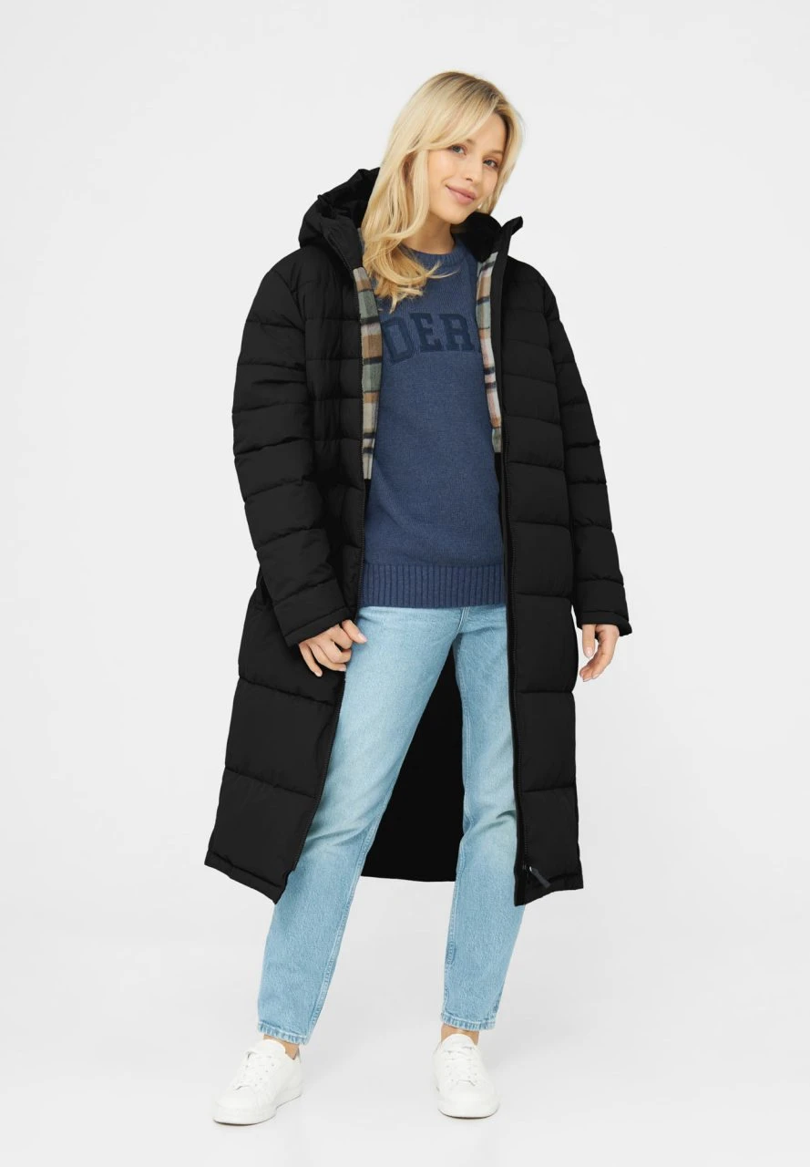 Nachhaltig produzierter Damen Wintermantel BIGHOLM von der Hamburger Marke Derbe. Konzipiert für das intensive, norddeutsche Wetter ist der gesteppte Mantel mit »DuPont Sorona« Wattierung ganz sicher auch ein verlässlicher Begleiter in südlicheren Gefilden. Das äußere Material aus recyceltem Polyester ist mit einer ökologischen Imprägnierung (»Bionic Finish® Eco«) versehen und schützt vor Nässe. Das weiche Fleece-Innenfutter am Oberkörper kommt im schicken Karomuster und besteht ebenfalls aus recyceltem Polyester. Der Mantel ist gerade und in normaler Passform geschnitten, sodass er auch in Kombination mit dicken Pullis oder Sweatjacken getragen werden kann. Reißverschlüsse an den Seiten des Saums bieten bei Bedarf mehr Bewegungsfreiheit.