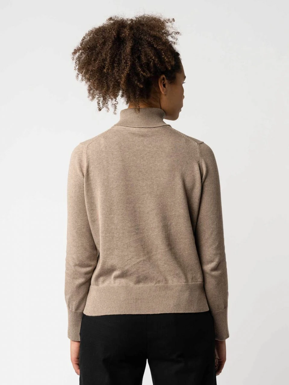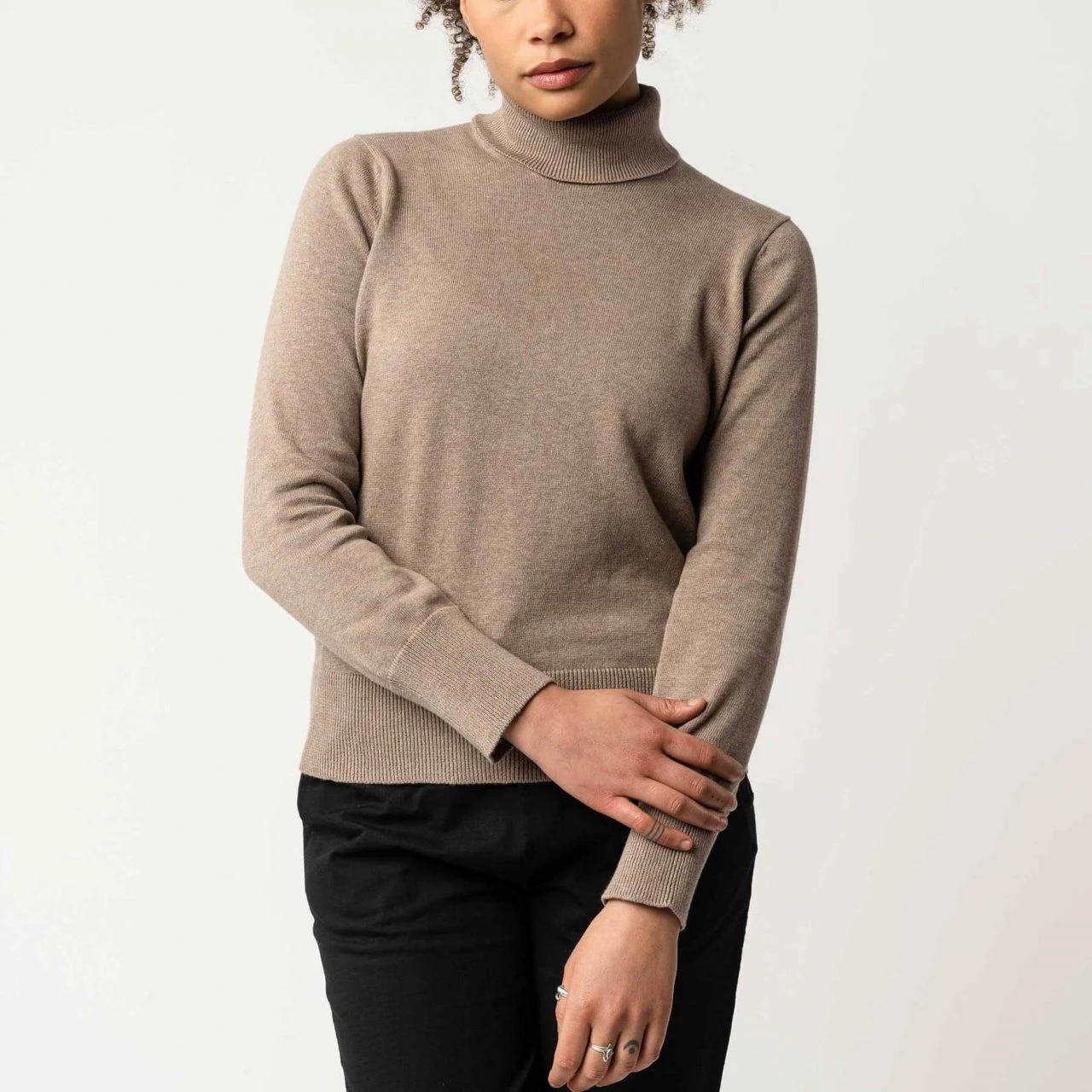 Zeitloser Rollkragen-Strickpullover aus reiner Fairtrade Bio-Baumwolle. Der Pullover mit normaler Passform hat an den Ärmel- und Hüftabschlüssen besonders breite Rippbündchen. Der angenehm weiche Feinstrick ist vorgewaschen, somit bleibt die Passform erhalten.