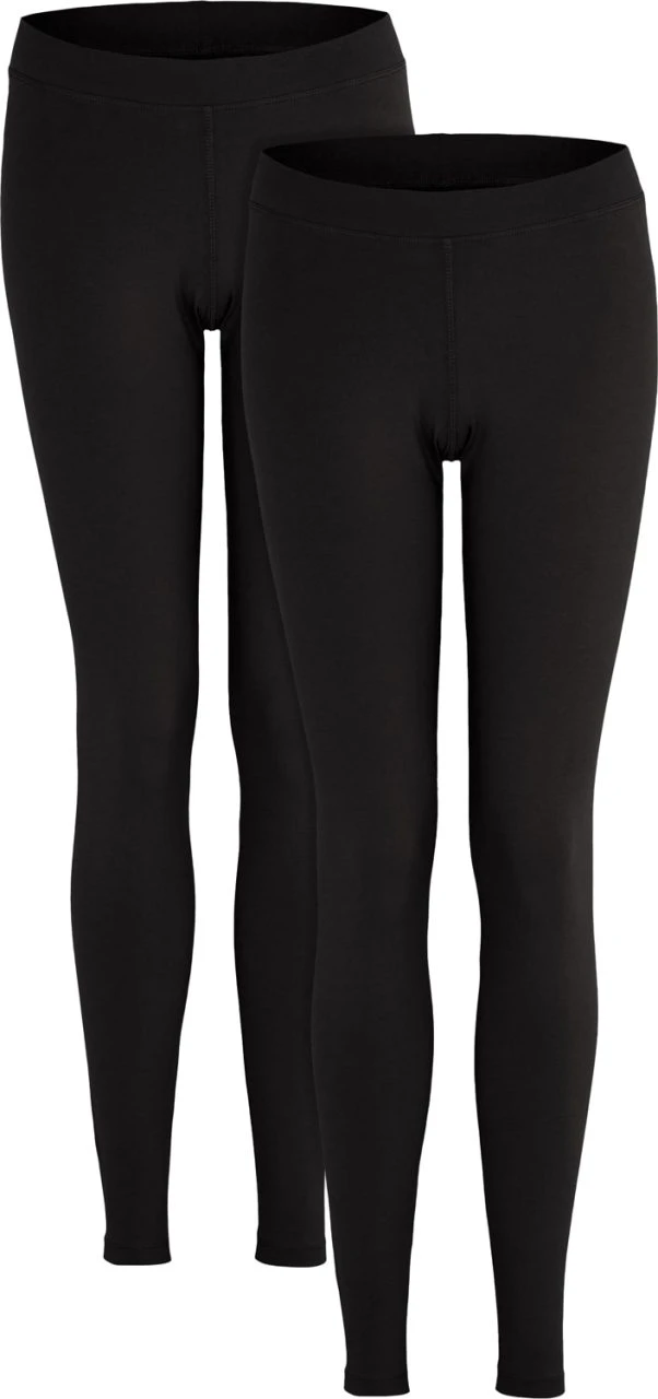 Hochwertige Leggings im günstigen Doppelpack aus Bio-Baumwolle und 5% Elastan. Die Leggings mit normaler Leibhöhe hat einen elastischen Bund, der für einen verlässlichen Sitz sorgt. Der weiche Jersey-Stoff schmiegt sich durch den geringen Elastan-Anteil angenehm an. Das Bein läuft nach unten hin leicht zu, ist aber nicht zu eng geschnitten.