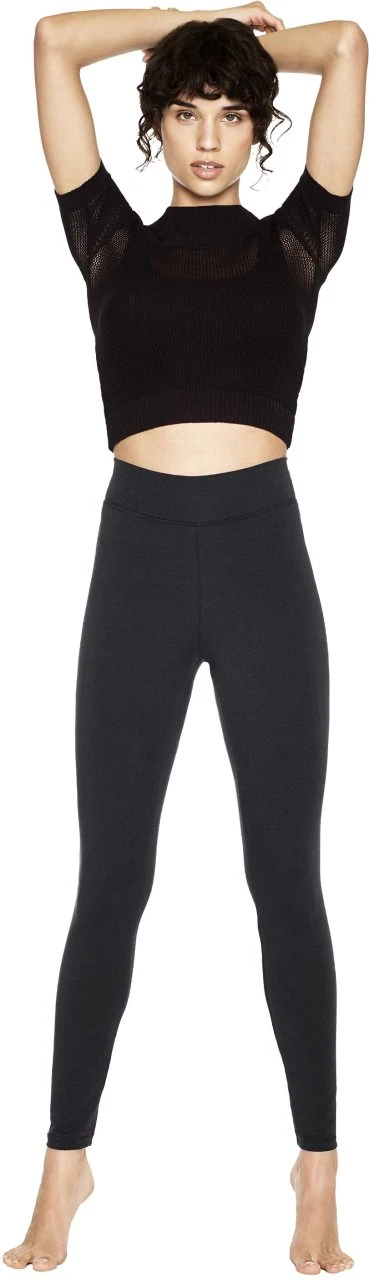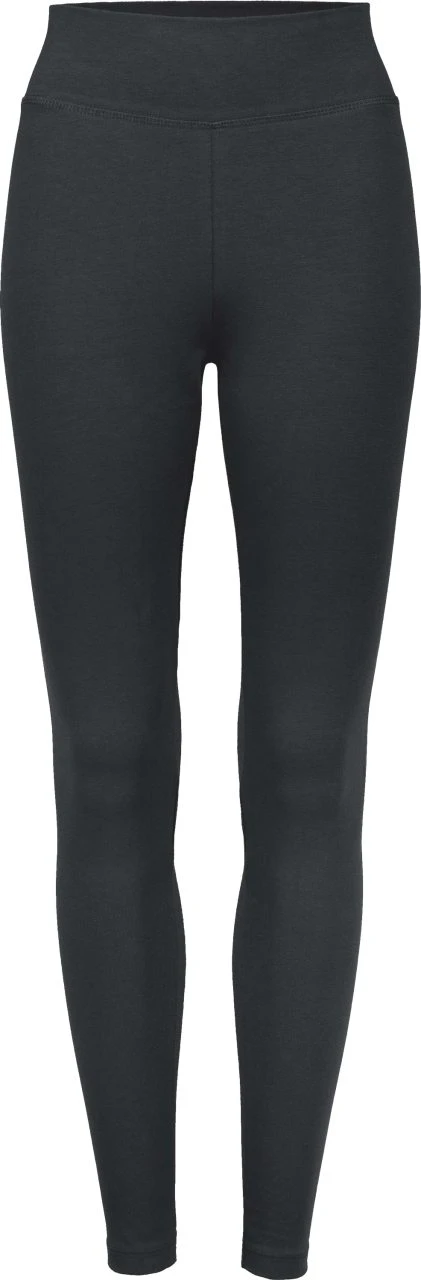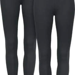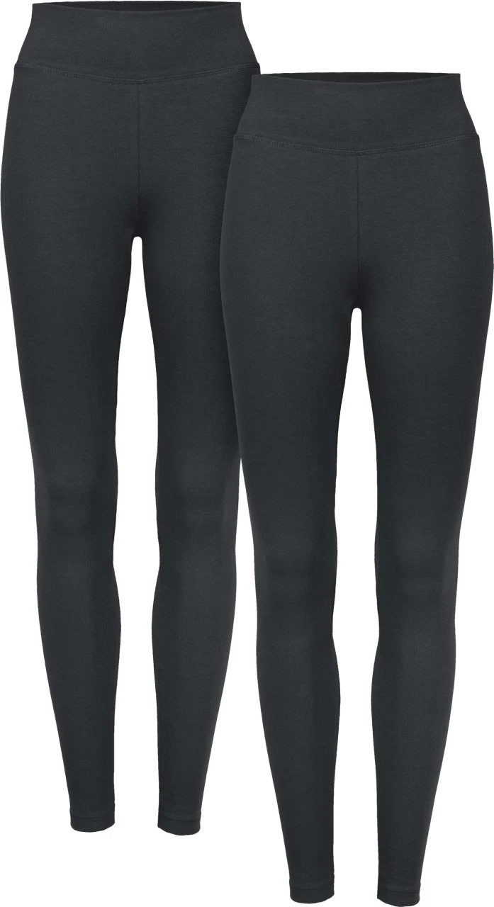 Mattschwarze Leggings aus Bio-Baumwolle und 5% Elastan im Doppelpack. Durch den geringen Anteil an Elastan macht der Jersey-Stoff jede Bewegung mit und sitzt insgesamt etwas lockerer. Die Leggings hat eine relativ hohe Leibhöhe und einen breiten Bund. Der Stoff mit einer Grammatur von 200 g/m² ist blickdicht, dennoch absolut bequem und nicht zu dick.