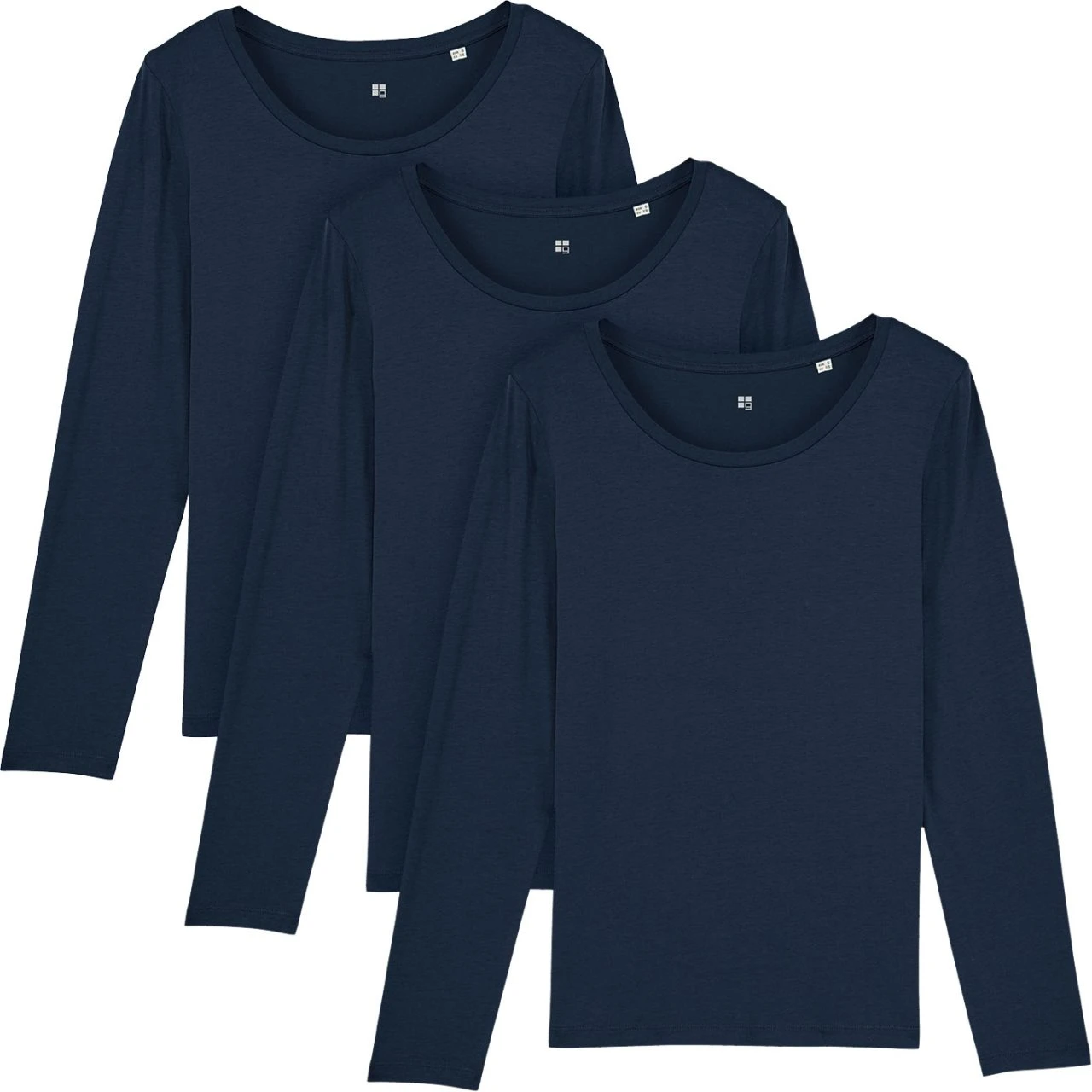 Das beliebte Damen Longsleeve im günstigen 3er-Pack: Leicht tailliertes Longsleeve aus reiner Bio-Baumwolle. Der leichte Single-Jersey Stoff liegt angenehm weich auf der Haut. Der flache Rundhalsausschnitt ist etwas weiter geschnitten und mit Single-Jersey eingefasst.