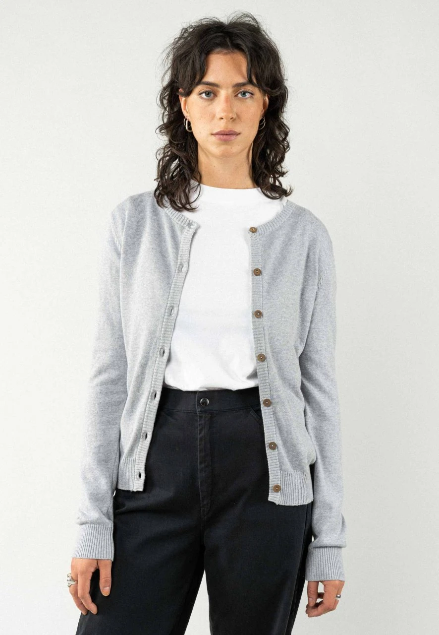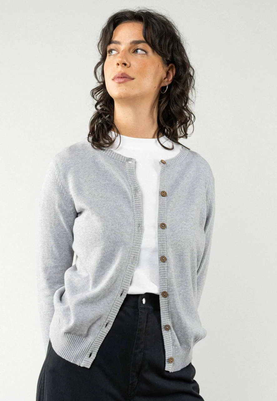 Leichter Cardigan aus reiner Fairtrade Bio-Baumwolle. Die figurnah geschnittene Strickjacke kommt mit beständigen Rippbündchen und hat Knöpfe aus Kokosnuss. Die Strickware ist vorgewaschen, somit bleibt die Passform erhalten.
