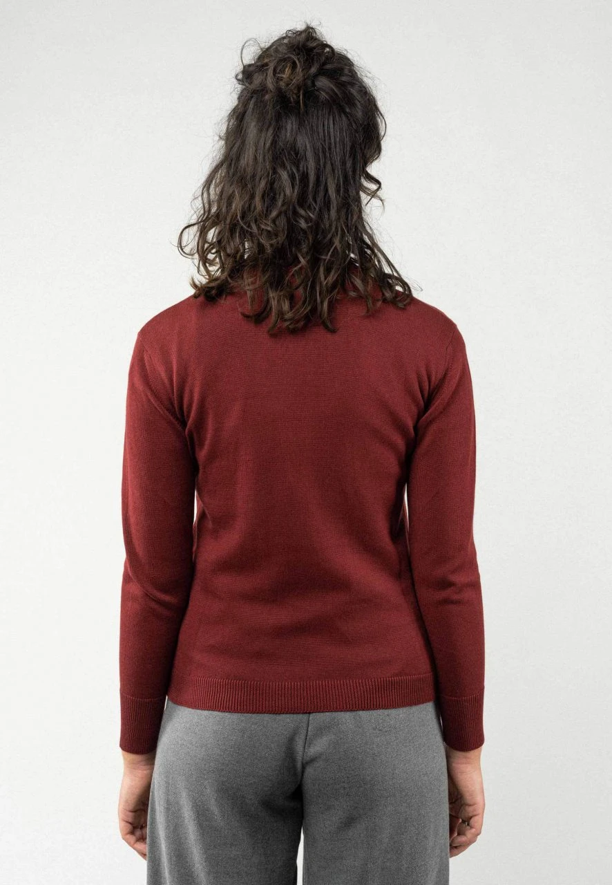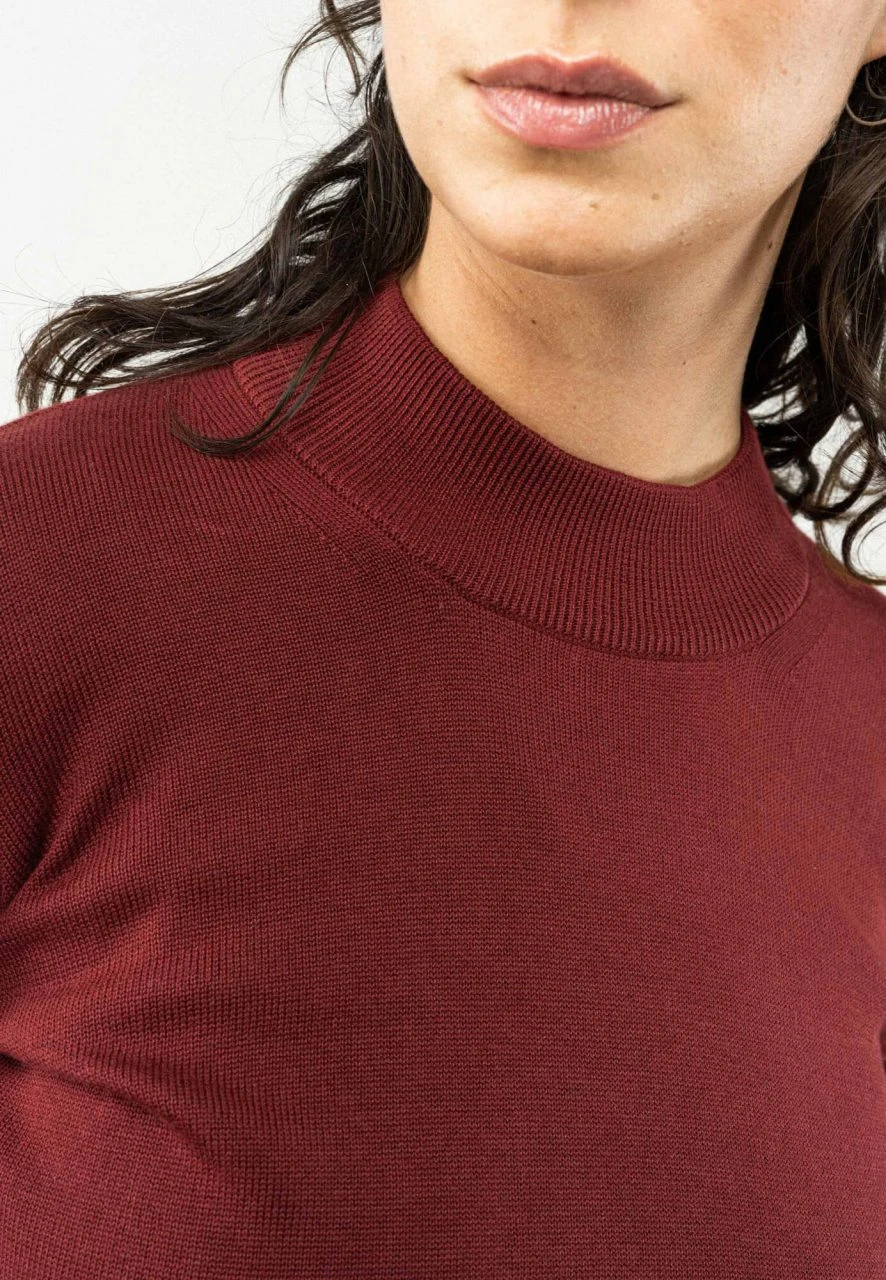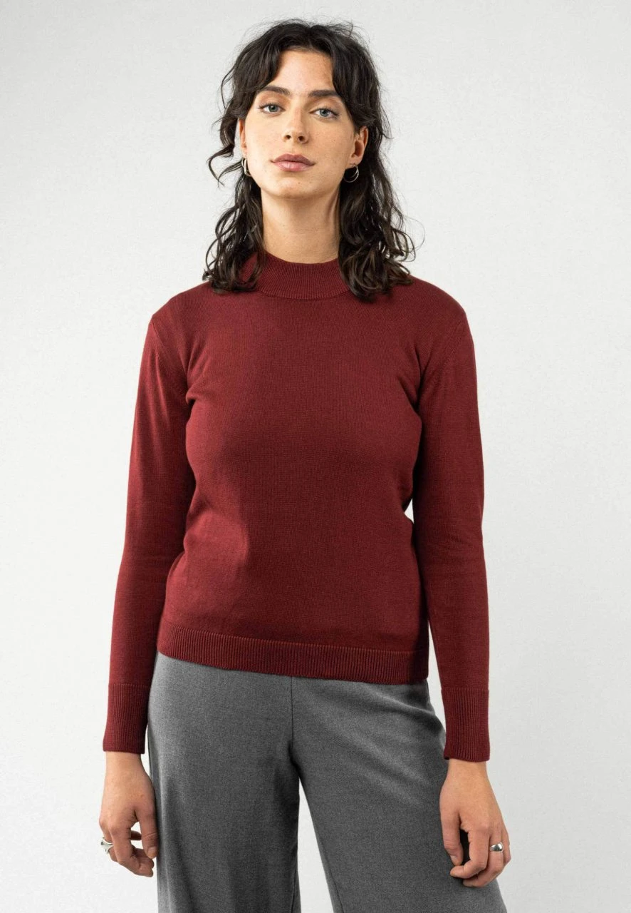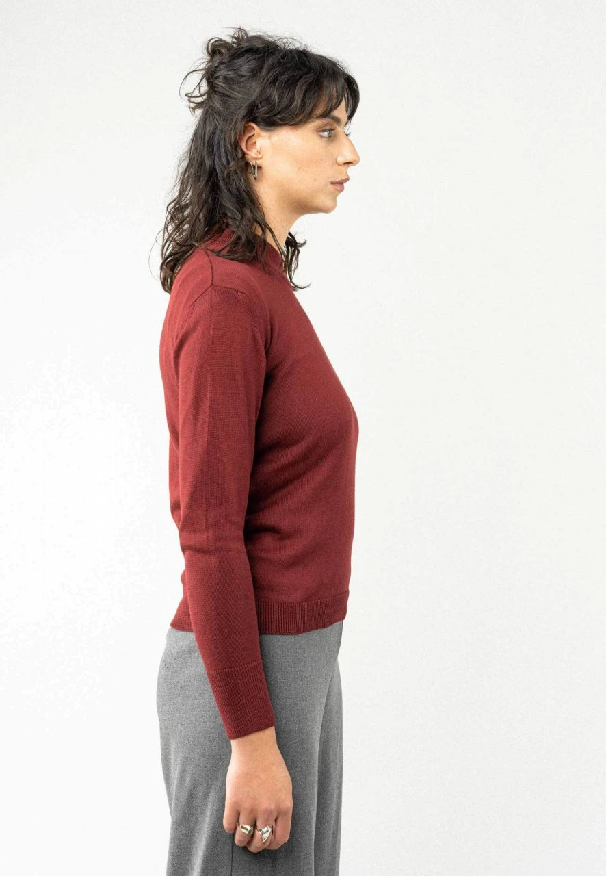Figurnah geschnittener Strickpullover aus reiner Fairtrade Bio-Baumwolle. Der Pullover hat einen gerippten Stehkragen, leicht überschnittene Schultern und breite Rippbündchen an Ärmel- und Hüftabschlüssen. Der angenehm weiche Feinstrick ist vorgewaschen, somit bleibt die Passform erhalten.