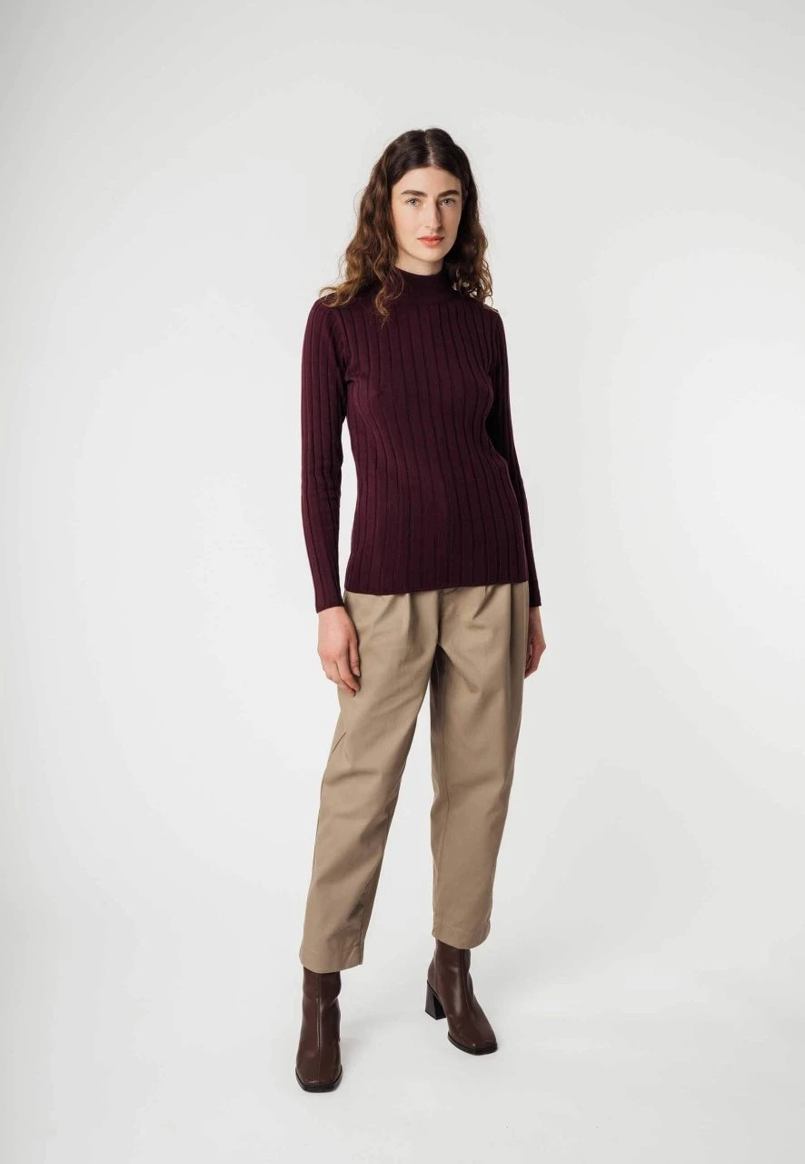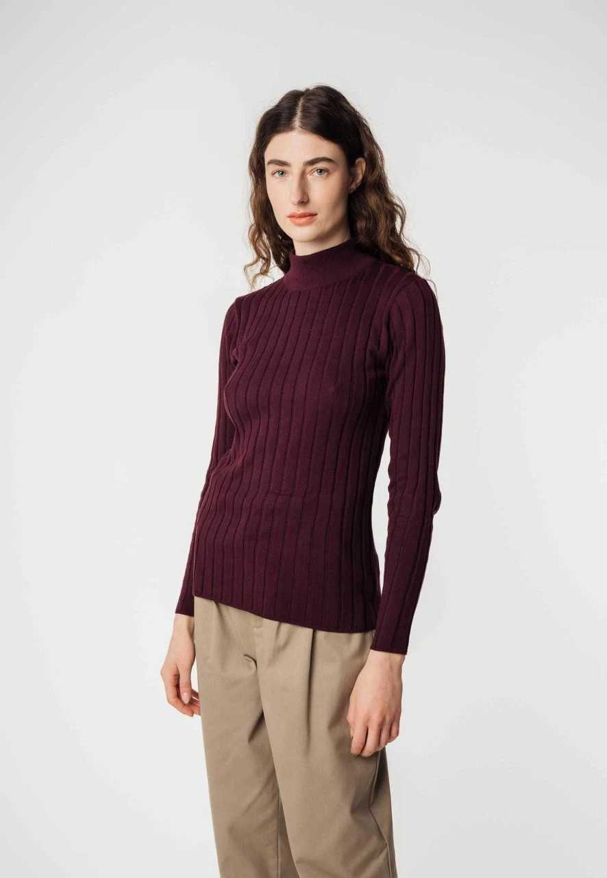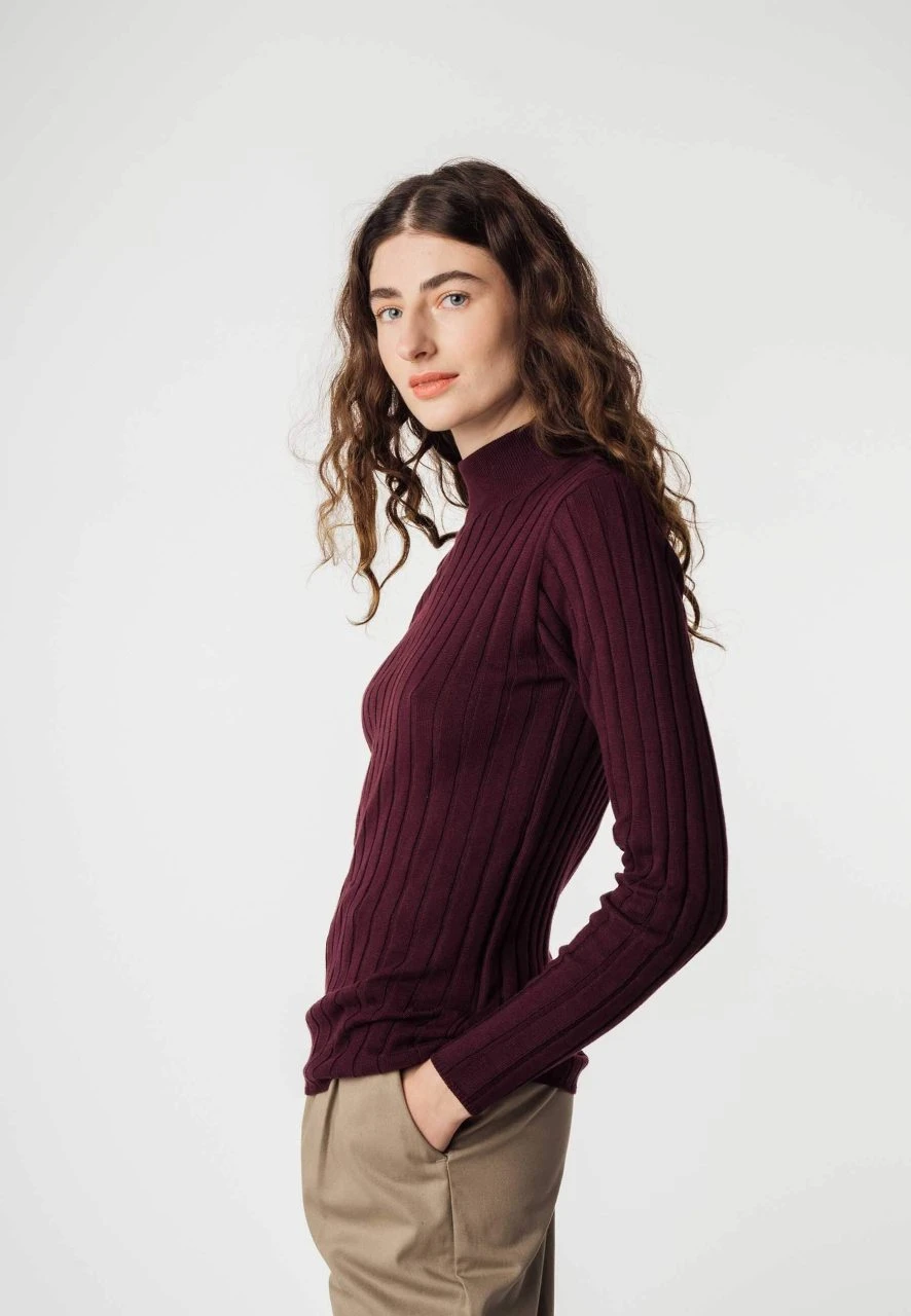 Enganliegender Feinstrick Pullover aus reiner Fairtrade Bio-Baumwolle. Der leichte Pullover ist durch seine Rippstruktur auf natürliche Weise – ohne den Einsatz von Elastan – elastisch. Mit dem breiten Stehkragen und den schmalen Ärmel- und Hüftabschlüssen findest du hier eine elegante Bereicherung für dein Herbst- und Winter-Outfit. Der angenehm weiche Feinstrick ist vorgewaschen, somit bleibt die Passform erhalten.