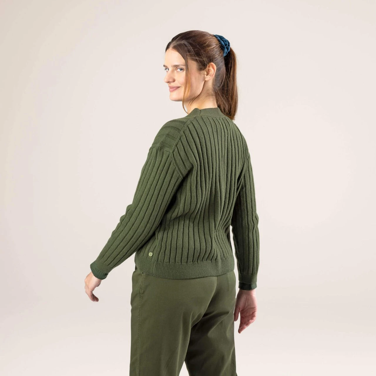 Die Strickjacke »Pirala« von Living Crafts wird unter fairen Bedingungen hergestellt. Der Hersteller produziert sein gesamtes Sortiment unter Einhaltung strenger Sozialstandards und verzichtet dabei völlig auf bedenkliche Chemikalien. Die genutzte Wolle stammt von Schafen aus kontrolliert biologischer Tierhaltung (kein Mulesing).