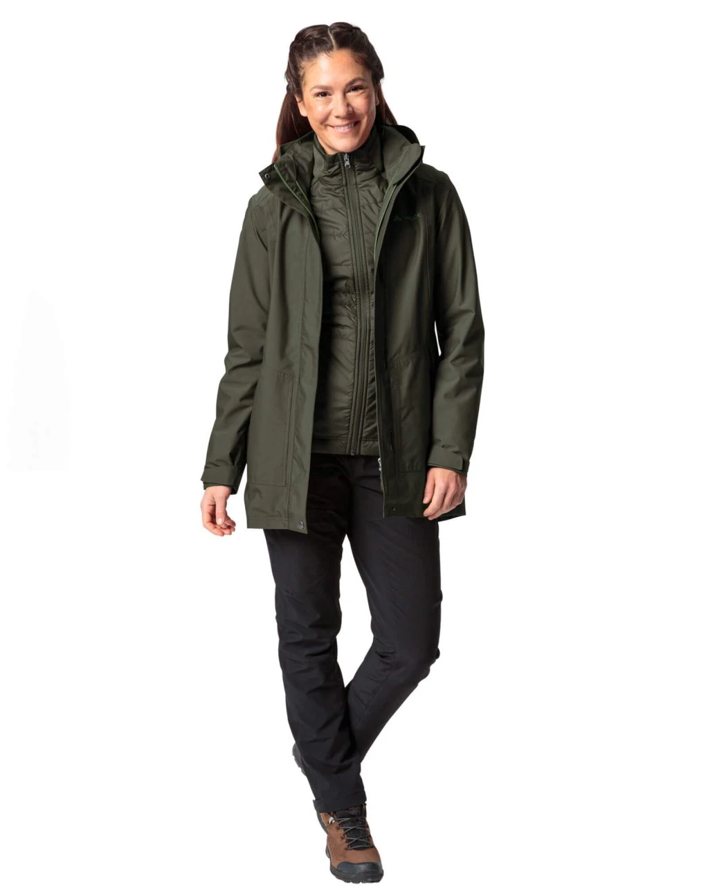 Mit dem »Idris 3in1 Parka III« von VAUDE bekommst du zwei vollwertige Jacken zum Preis von einer – beide Jacken sind gleichermaßen modisch und funktional. Die Damen Doppeljacke besteht aus einer wind- und wasserdichten Außenjacke sowie einer bequemen Hybrid-Fleece Innenjacke, die sich mit wenigen Handgriffen von der Außenjacke lösen lässt. Zusammen ergeben beide Jacken eine vollwertige Winterjacke mit höchster Funktionalität und hervorragendem Tragekomfort. Solo getragen bekommt man zusätzlich eine wetterfeste Übergangsjacke und eine Fleecejacke für kühle Frühlings- oder Herbsttage. Die weitenregulierbare Kapuze der Außenjacke lässt sich zudem unkompliziert abnehmen – konfiguriere dir deine perfekte Jacke für einen perfekten Tag!