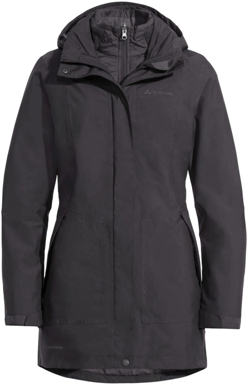 Mit dem »Idris 3in1 Parka III« von VAUDE bekommst du zwei vollwertige Jacken zum Preis von einer – beide Jacken sind gleichermaßen modisch und funktional. Die Damen Doppeljacke besteht aus einer wind- und wasserdichten Außenjacke sowie einer bequemen Hybrid-Fleece Innenjacke, die sich mit wenigen Handgriffen von der Außenjacke lösen lässt. Zusammen ergeben beide Jacken eine vollwertige Winterjacke mit höchster Funktionalität und hervorragendem Tragekomfort. Solo getragen bekommt man zusätzlich eine wetterfeste Übergangsjacke und eine Fleecejacke für kühle Frühlings- oder Herbsttage. Die weitenregulierbare Kapuze der Außenjacke lässt sich zudem unkompliziert abnehmen – konfiguriere dir deine perfekte Jacke für einen perfekten Tag!