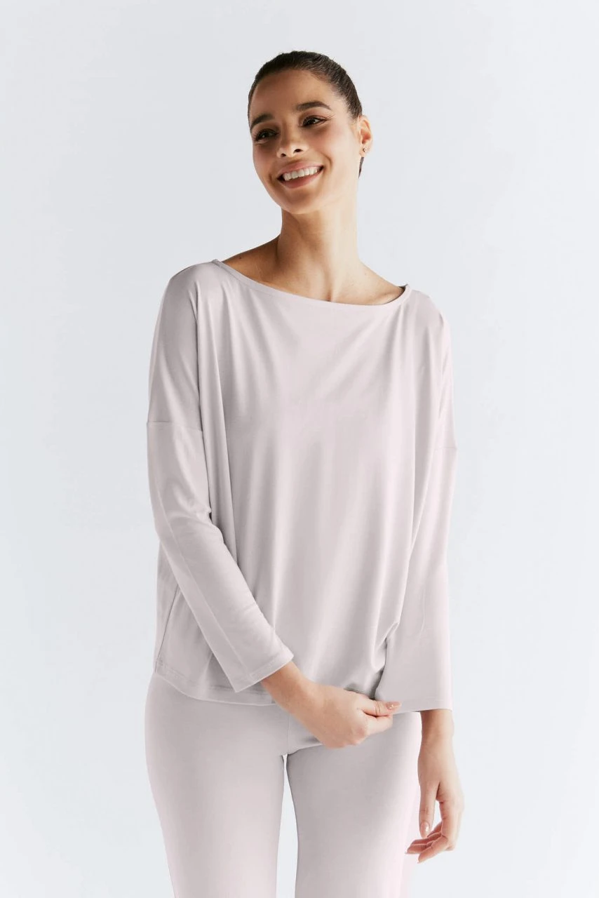 Bequemes Longsleeve-Shirt aus 79% Micromodal und 21% recyceltem Polyester. Das Langarmshirt kommt im sehr weiten Schnitt mit überschnittenen Ärmeln. Am Rücken hat das Oberteil eine vertikale Ziernaht. Der angenehm weiche Stoff-Mix fällt schön und liegt wunderbar auf der Haut.